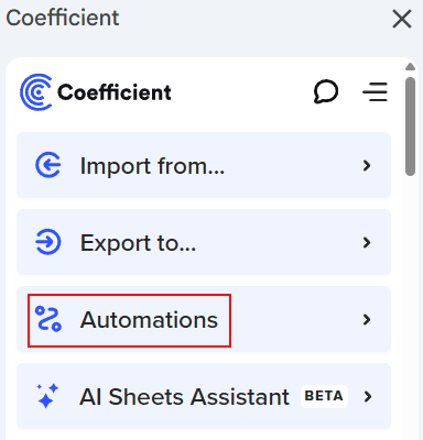 1. Open the Coefficient sidebar and select "Automations". |