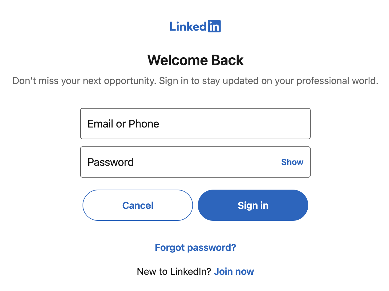 5. Enter your LinkedIn Ads email and password, then click "Sign In".