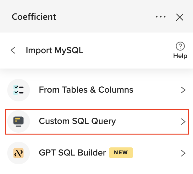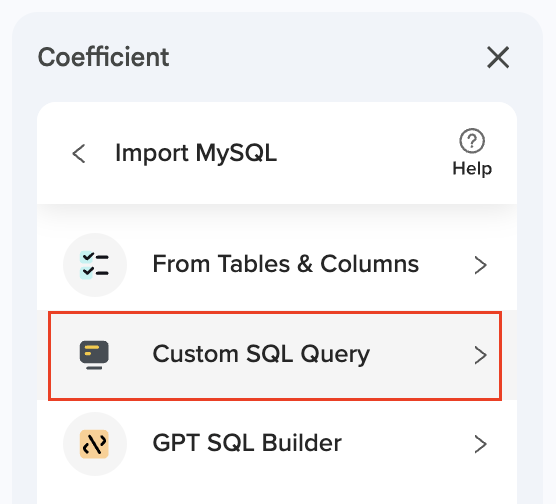 3. Select MySQL and choose “Custom SQL Query”.