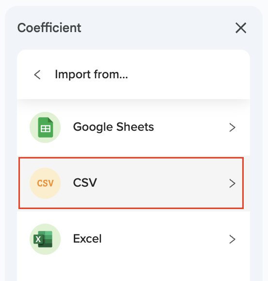 1. Launch the Coefficient Sidebar and select “Import from...”
