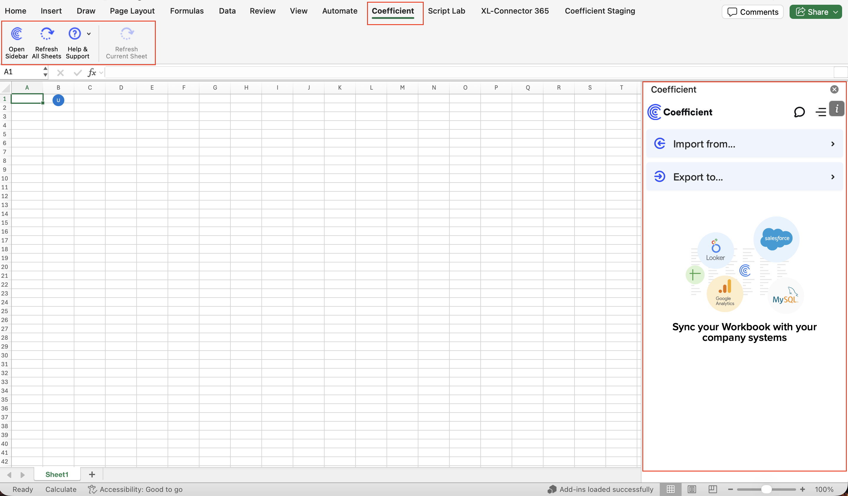 4. Once the installation is complete/successful, you will see a “Coefficient” tab in your Excel ribbon. Now you can proceed with creating imports inside Excel for Desktop! 😎