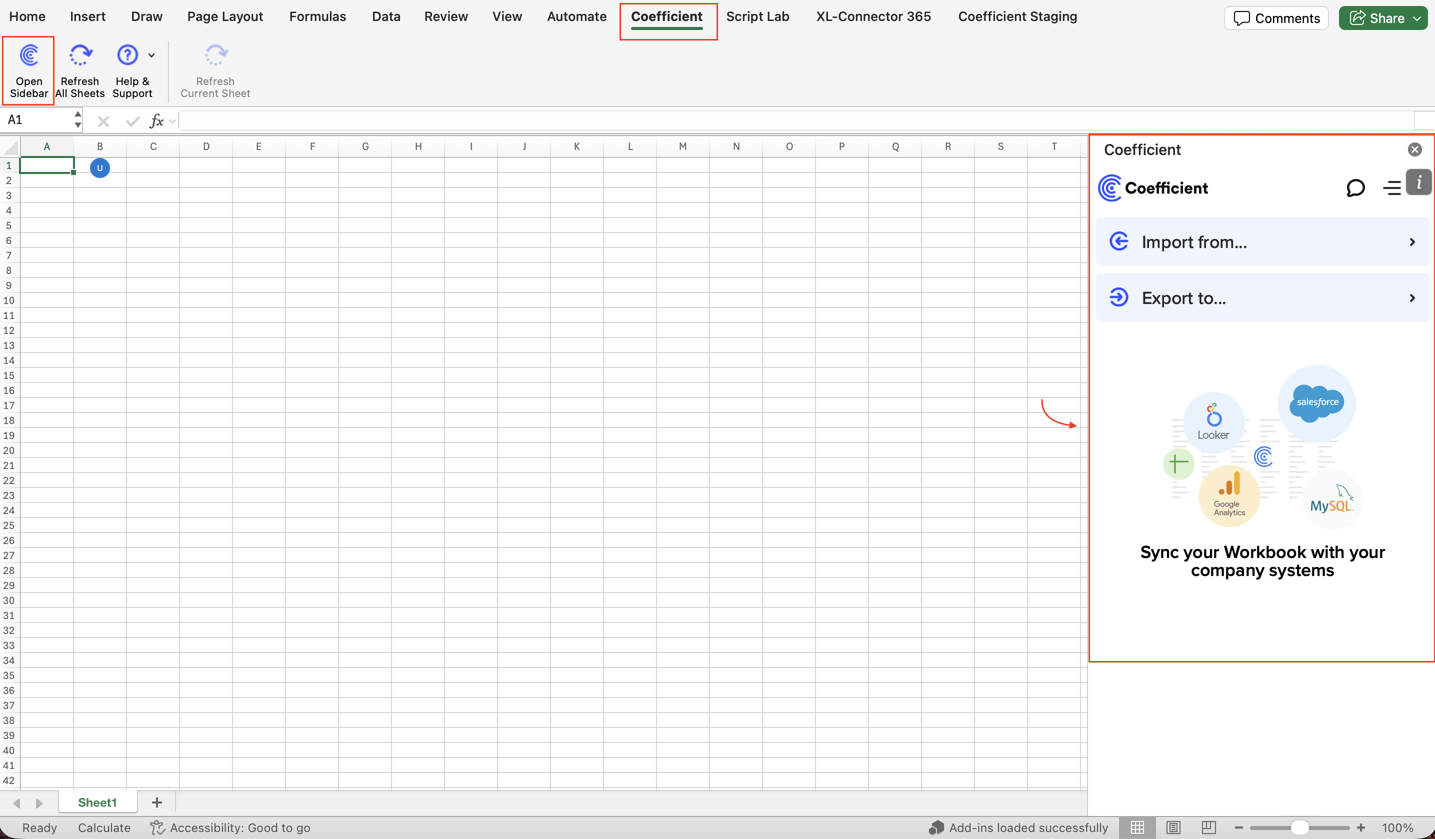 1. In your Excel sheet, go to the Coefficient tab and select “Open Sidebar”.