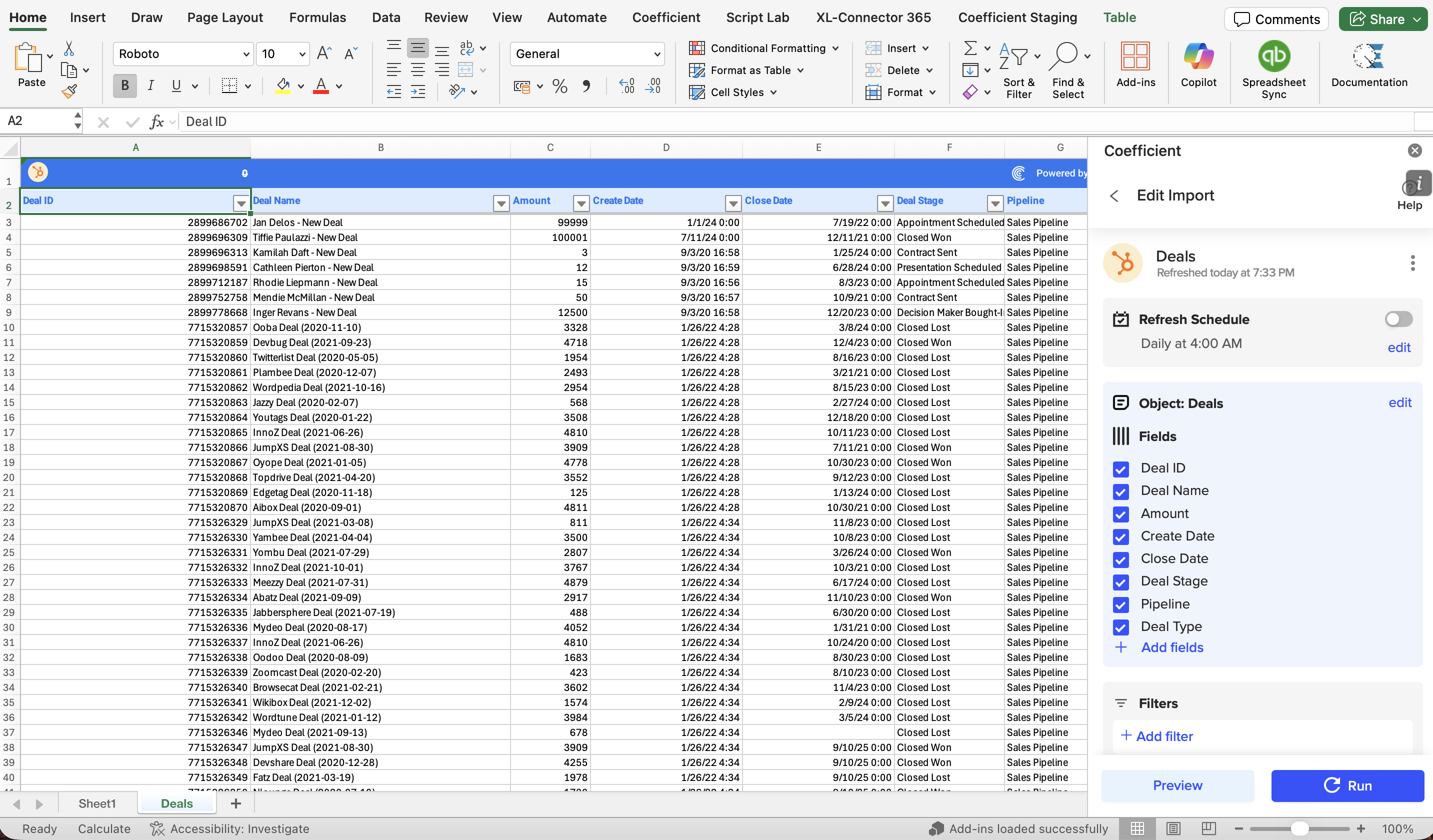 7. Congratulations on your first HubSpot import using Coefficient’s Excel Add-In. 🎉
