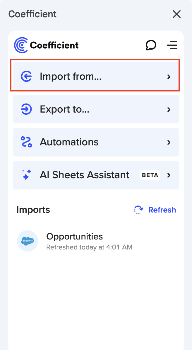 1. Open the Coefficient Sidebar and click on the âImport fromâŚâ button. |