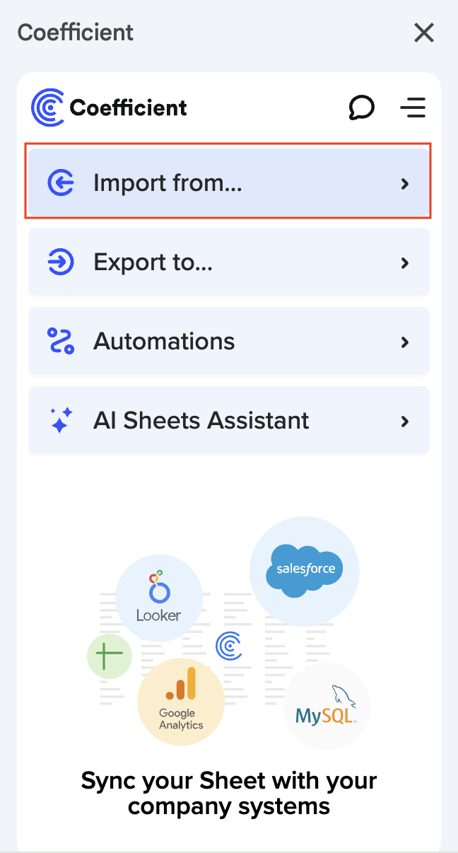 1. Open the Coefficient Sidebar and click on the “Import from…” button. |