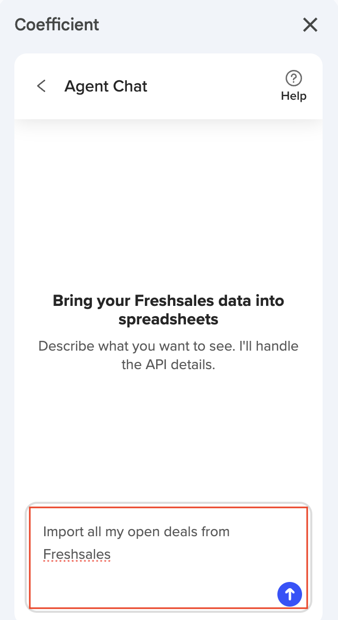 3. Enter a clear and specific prompt describing your request for the data you need from Freshsales. |
