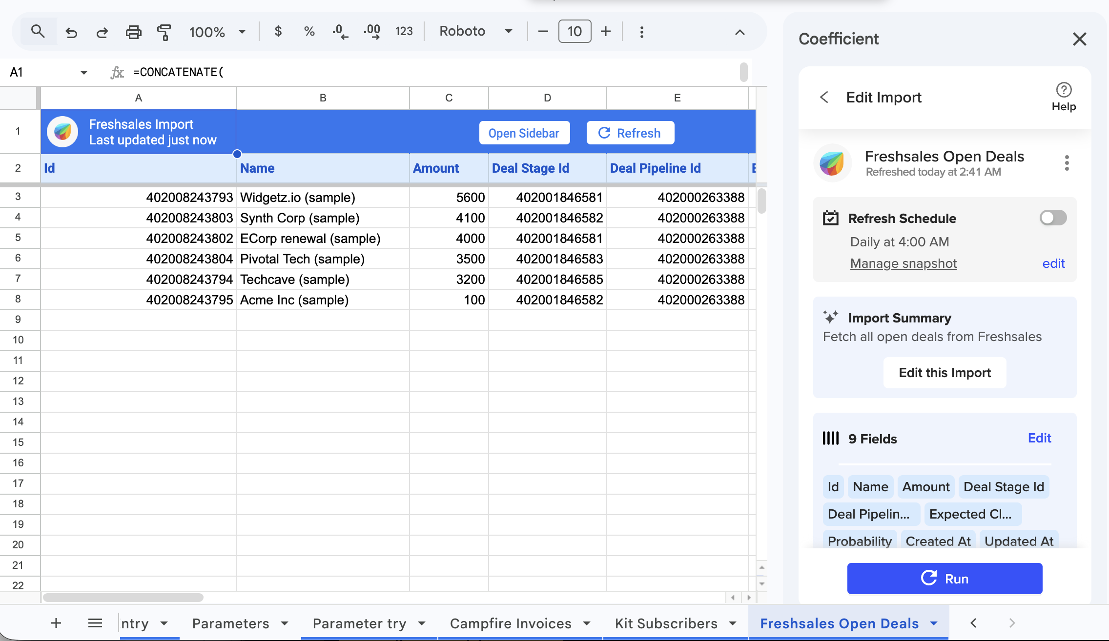Once you have pulled your data into your spreadsheet using Coefficient, you can set up the following: